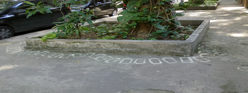 ...outra vez. Então Fabiano teve a idéia de costurar o espaço do bairro pintando esses desenhos na calçada, intervenção direta e precisa, sem precisar de muitas intervenções nos canteiros particulares dos seus respectivos moradores.