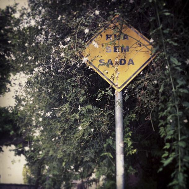 As placas são para nós imperativos de ações, anúncios de situações, perspectivas construídas. Seu conteúdo sofre com sua localização, e sua localização modifica-se devido ao seu conteúdo. Um aviso de “Rua Sem Saída” entre as heras e as flores não pode simplesmente significar o final da rua. É uma ausência de escolha, é uma situação inevitável, é talvez um amor do qual não se é possível escapar. O enunciado de “Garagem em Uso” entre as volutas do portão gradeado compõe a sensação de movimento, deixa claro que aquele espaço não pode ser obstruído. Da mesma forma, uma parede antiga e gasta com uma bela janela ornamentada torna-se enrijecida, inflexível, excessivamente séria com uma placa de letras duras e retas informando “Estacionamento Privativo da Empresa”, ou uma garagem costurada por trepadeiras e ornada por azulejos torna-se aérea através de uma placa antiga de correio com o símbolo de um pássaro voando. Contradizem-se ou completam-se, paisagem e enunciado.