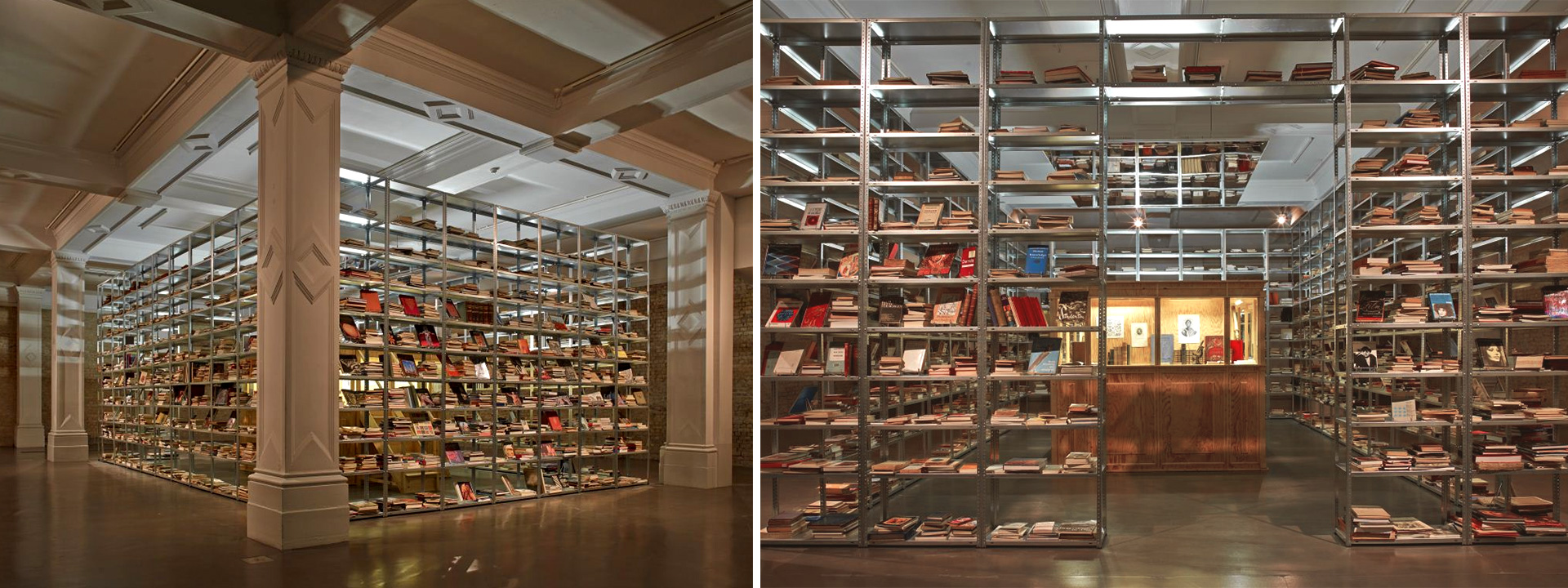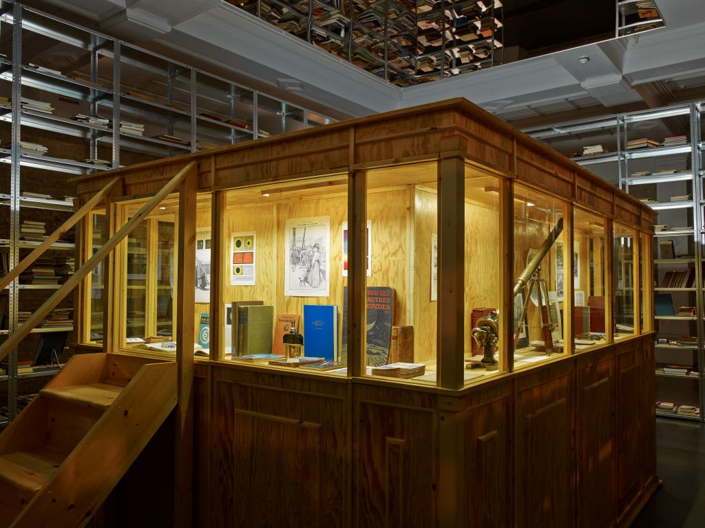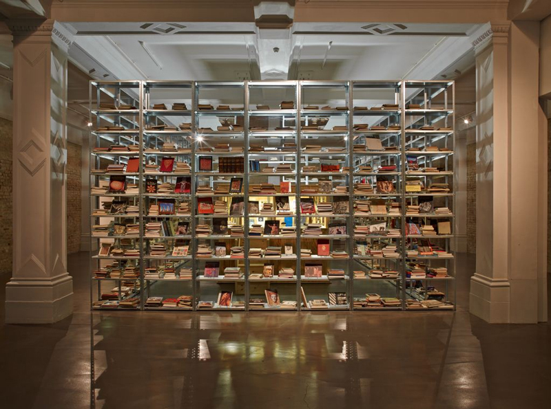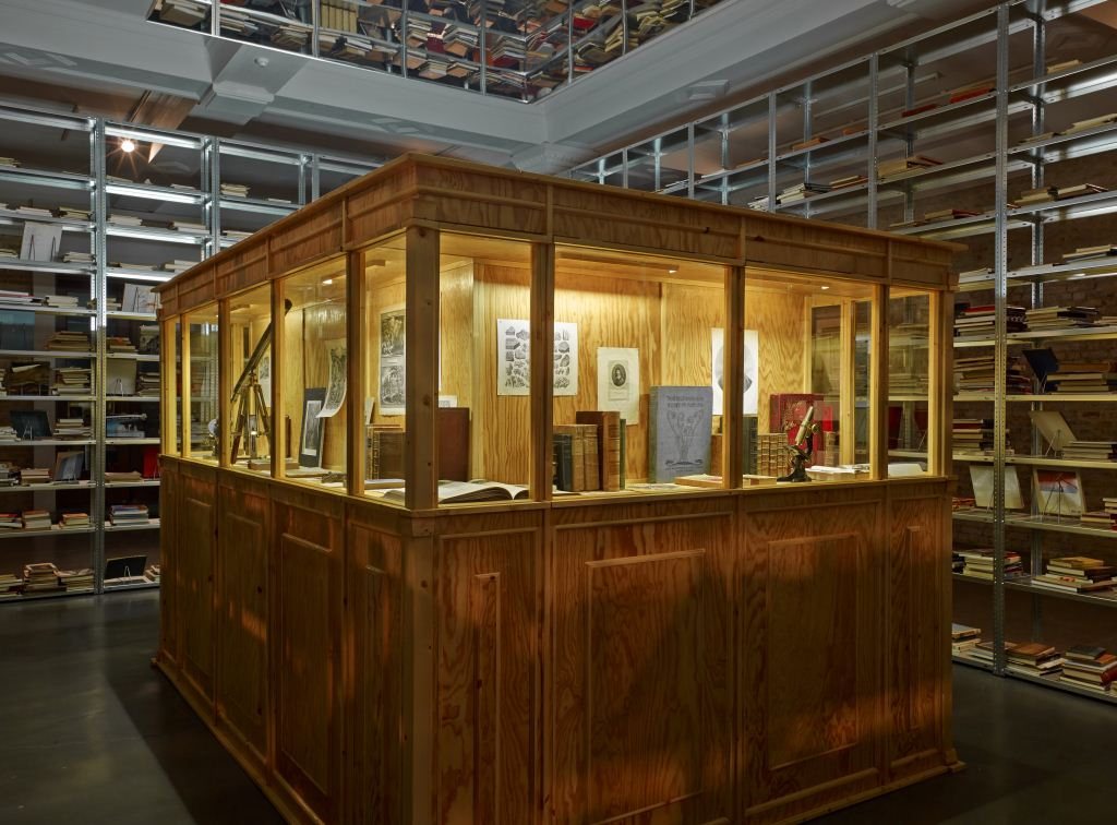 Pilhas labirínticas de livros formando um quadrilátero eram vistas logo após a entrada da galeria Whitechapel, em Londres. Dispostas em uma combinação de prateleiras que iam do chão ao teto, publicações em diversas línguas, temas e formatos ocupavam quase toda a sala. Tal como em uma biblioteca, estavam lá ao alcance dos visitantes. Um dos lados se abria para uma estrutura menor na parte interior, onde objetos científicos, gravuras e livros raros eram exibidos lado a lado em armários protegidos por vidros – uma recriação de um gabinete de curiosidades. No alto, uma combinação de dois espelhos, junto a uma luz florescente, reproduzia a instalação em uma perspectiva infinita e em múltiplas camadas.