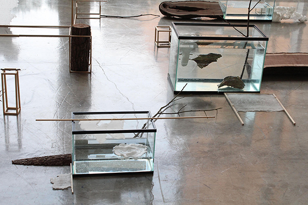 Em meu próprio trabalho pessoal como artista, busco discutir as possibilidades de contato entre o homem e o mundo natural em uma época mediada pela ciência, porém considerando as relações afetivas entre o homem e o mundo que o cerca. No início de minha trajetória artística, criei diversos aquários que continham esculturas flutuantes feitas de parafina, que estavam sujeitas aos processos físico-químicos do ambiente aquático. Os aquários eram uma espécie de laboratório nos quais micropaisagens eram exibidas e modificavam-se conforme o passar do tempo. Estudar a flutuação, a transparência, a reflexão e a distorção óptica eram alguns dos objetivos desses trabalhos, que remetiam a icebergs em degelo ou a paisagens relacionadas com a ideia de sublime.