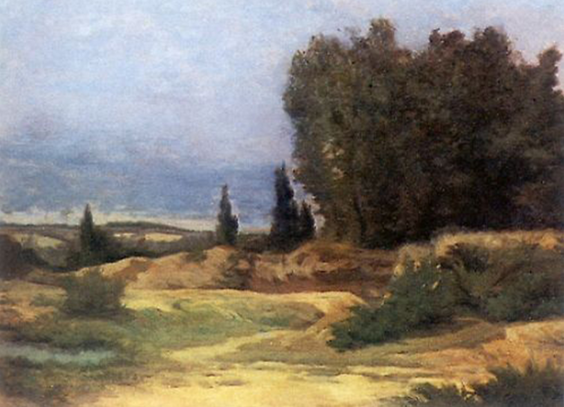 Um dos quadros, sobretudo, que representa uma sucessão de colinas, irregularmente sombreadas pela distribuição das nuvens no céu, pode ser apontado como verdadeira obra-prima do gênero.