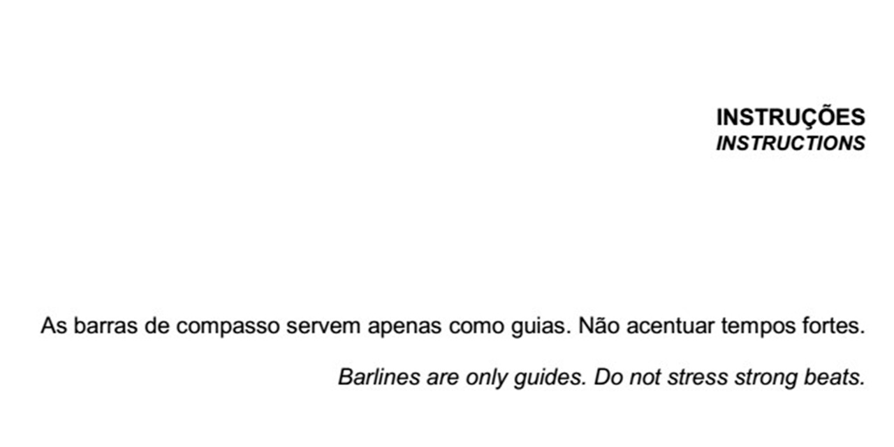 Destaca-se aqui uma alteração na notação musical proposta pelo compositor já nas instruções de performance.