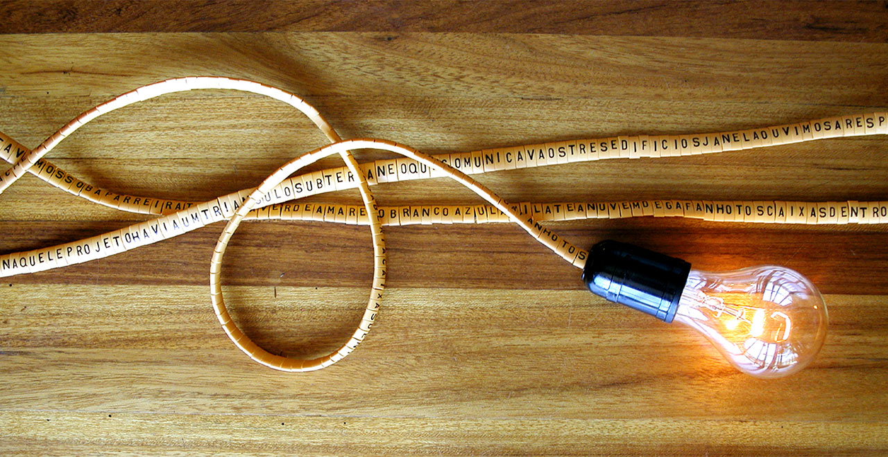 O ritmo lento do pulsar das lâmpadas colocadas sobre o chão e ligadas ao emaranhado de fios com texto lembra o estado de sonolência, um estado hipnótico que percebemos pouco antes de dormir e em que estamos sozinhos com nossos pensamentos. Essa sensação é reforçada pela forma que os fios tomam ao se espalharem, soltos sobre o chão, e pela luz rebaixada do ambiente onde o trabalho deve ser instalado. Os fios tornam-se mais pesados pela colocação dos marcadores sobre eles e, dispostos sobre o chão, lembram músculos que se afrouxam quando caímos no sono. Por tudo isso, o trabalho adquire um caráter de lassidão ou ócio que acentua uma aproximação ao estado de sonolência (figura 2).