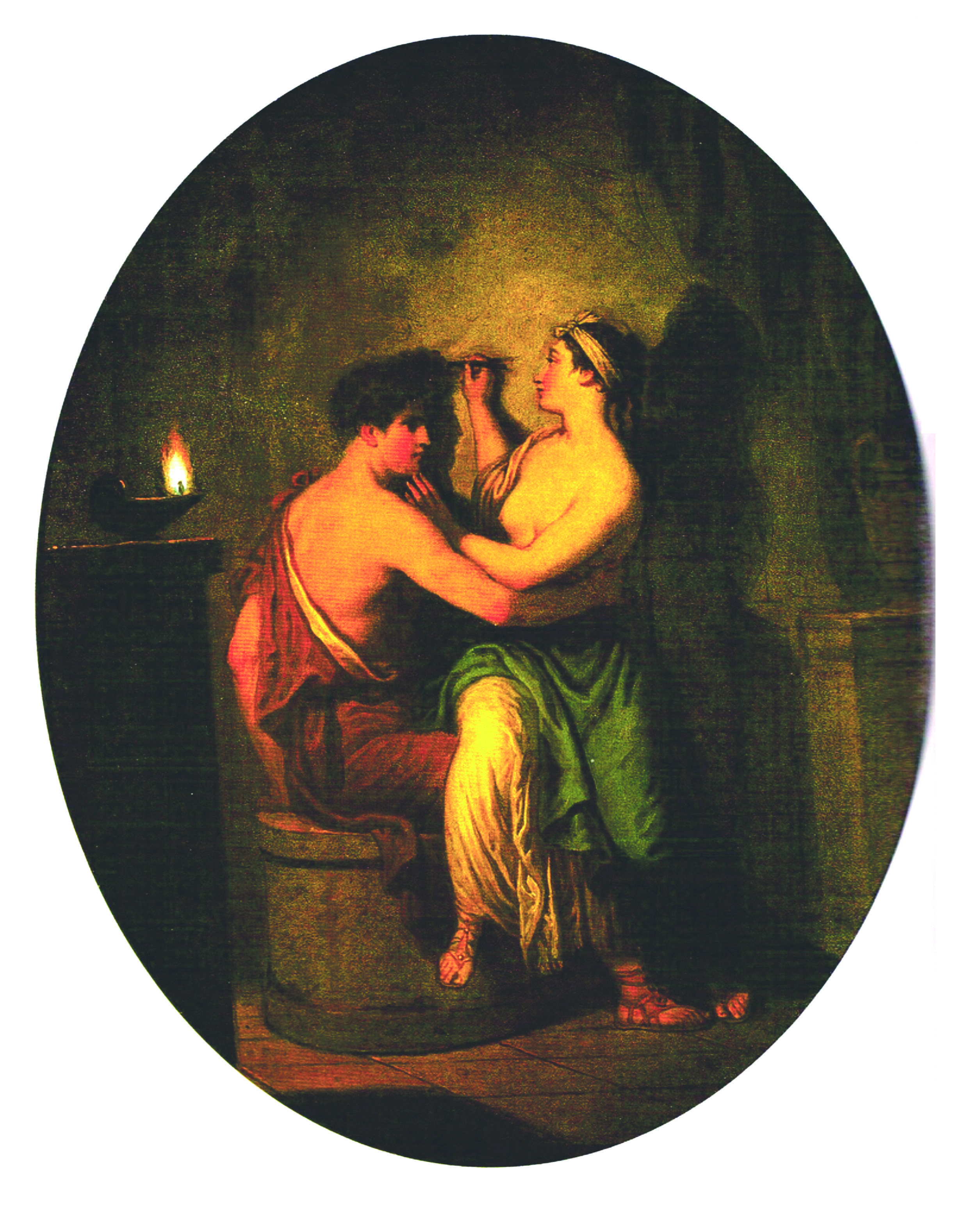 É interessante trazer ao texto a lenda de Dibutades , considerada como a origem da pintura, contada por Plínio o Velho em seu 35º livro das Histórias Naturais: Uma moça de nome Dibutades sabia que seu prometido iria partir em breve para uma longa viagem. No último encontro dos dois, ela aproveita a sombra projetada do rosto do rapaz na parede para marcar com um carvão sua silhueta, pois, já sabendo de sua ausência futura, ela queria conservar algum traço de sua presença atual. Sob esse olhar, o retrato nasce da necessidade de construir uma imagem de alguém que irá se ausentar – por um afastamento ou pela morte. Esta é uma lenda sobre o nascimento da pintura, que se dá através de um retrato, já nos remetendo para a questão da presença e da ausência. (Fig. 02).