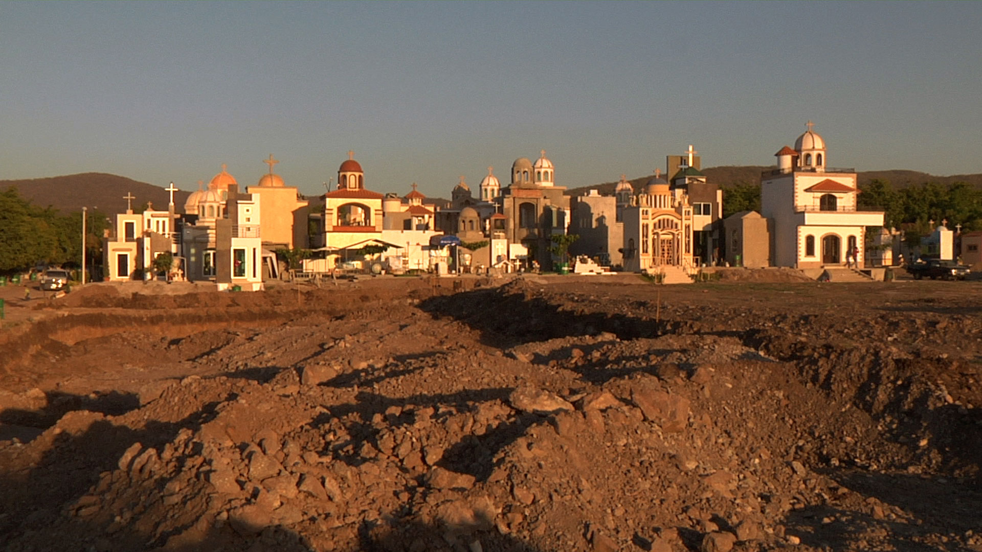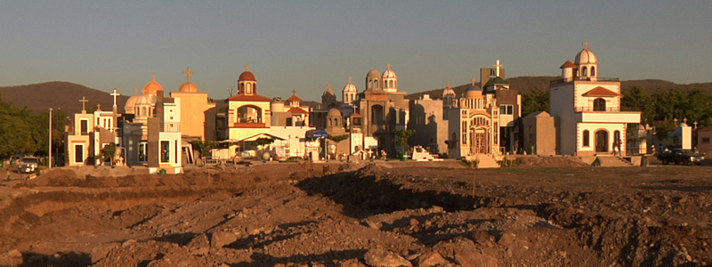 MHB: Um trabalho que eu tenho gostado muito é de uma artista mexicana, a Natalia Almada, que tem origem no cinema documental e vem sendo convidada para participar de exposições e de bienais de arte contemporânea. Ela tem menos de 40 anos e o tipo de documentário que ela faz, pelo ritmo estendido, pela sensibilidade, pela participação de um olhar intuitivo que não é assertivo – preto ou branco, bom ou mal – possui algo nítido da sensibilidade feminina de que falamos. Isso fica muito claro em um filme que ela apresentou na Bienal de Veneza, chamado El Velador. Ali, ela aborda um universo que só existe em função de um segmento muito masculino da sociedade mexicana, que é basicamente constituído por homens muito violentos, o segmento do narcotráfico. Acho que o olhar feminino está na delicadeza com a qual ela se aproxima do tema: um cemitério de narcotraficantes em uma cidade próxima à fronteira com os Estados Unidos, ou seja, uma zona muito conflituosa, violenta. O que aconteceu foi que acabou nascendo uma cidadezinha em torno deste cemitério, pois o número constante de enterros gera muita demanda de serviços variados: pedreiros, músicos para cortejos, faxineiros. Os traficantes constroem túmulos enormes e as gangues disputam em opulência. A Natalia Almada filma com uma câmera praticamente parada, que acompanha 24 horas da rotina do cemitério, desde o momento em que o zelador chega para o turno da noite, até o final do dia que corre entre seus turnos de trabalho e, novamente, quando ele retorna no próximo entardecer para novo turno. Com uma observação delicada, não invasiva e que não julga o que a câmera vai registrando, ela mostra que, mesmo em um lugar como este, que é resultado de uma das coisas mais terríveis que temos hoje em termos de conflito, também há vida, sentimentos reais e intensos, relações, apostas, projetos e tarefas a serem cumpridas.