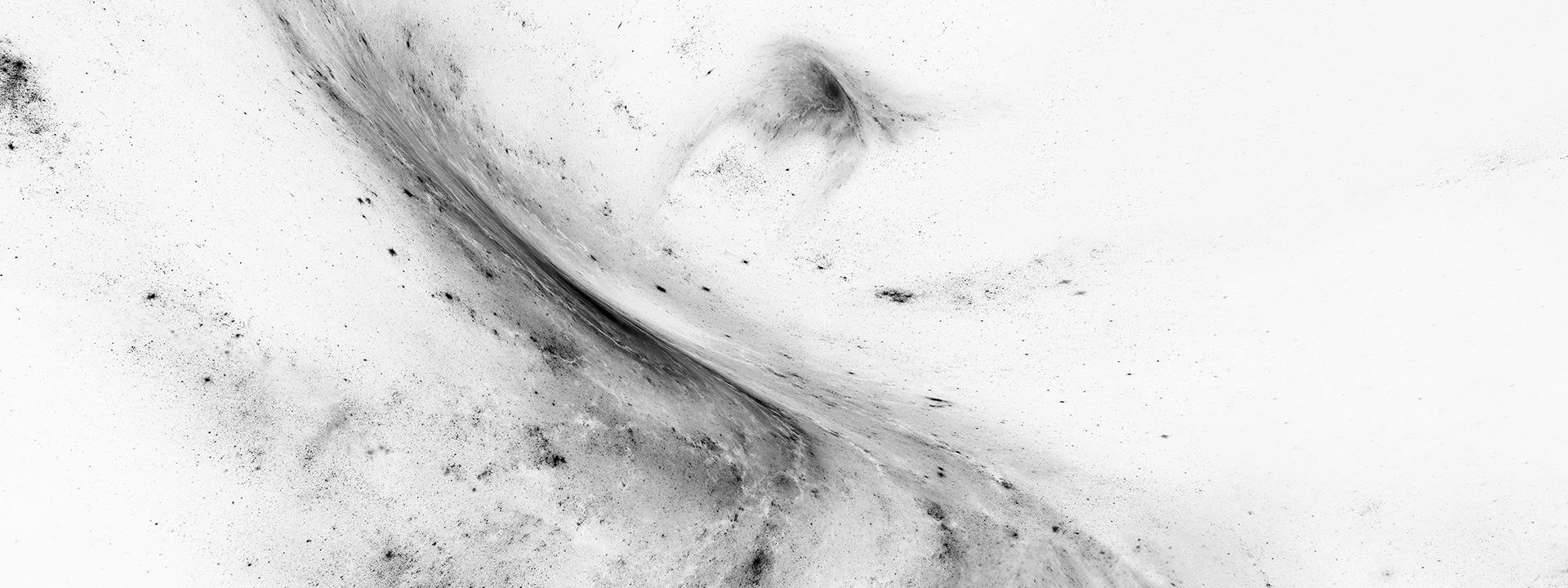 “Nesta série tenho como ponto de partida a apropriação de imagens em alta resolução do cosmos (nebulosas, galáxias, etc.), feitas pelo telescópio de mesmo nome. Elas são trabalhadas em programa de edição onde primeiramente as transformo em imagens preto e branco. Em seguida faço uma inversão, o preto tornando-se branco e vice-versa. O ponto luminoso de uma estrela transforma-se em ponto preto, gráfico, sobre um novo fundo branco, favorecendo uma conexão com o desenho e a gravura. Na sequência, algumas dessas imagens são reunidas e trabalhadas através de recortes e distorções para que seja criado um novo espaço fictício, poético, com novas e inventadas relações entre porções diferentes do cosmos. Um novo universo feito a partir, literalmente, do nosso próprio, ou melhor dizendo feito a partir de índices desse nosso universo, as fotografias do Hubble” (Manoel Veiga).