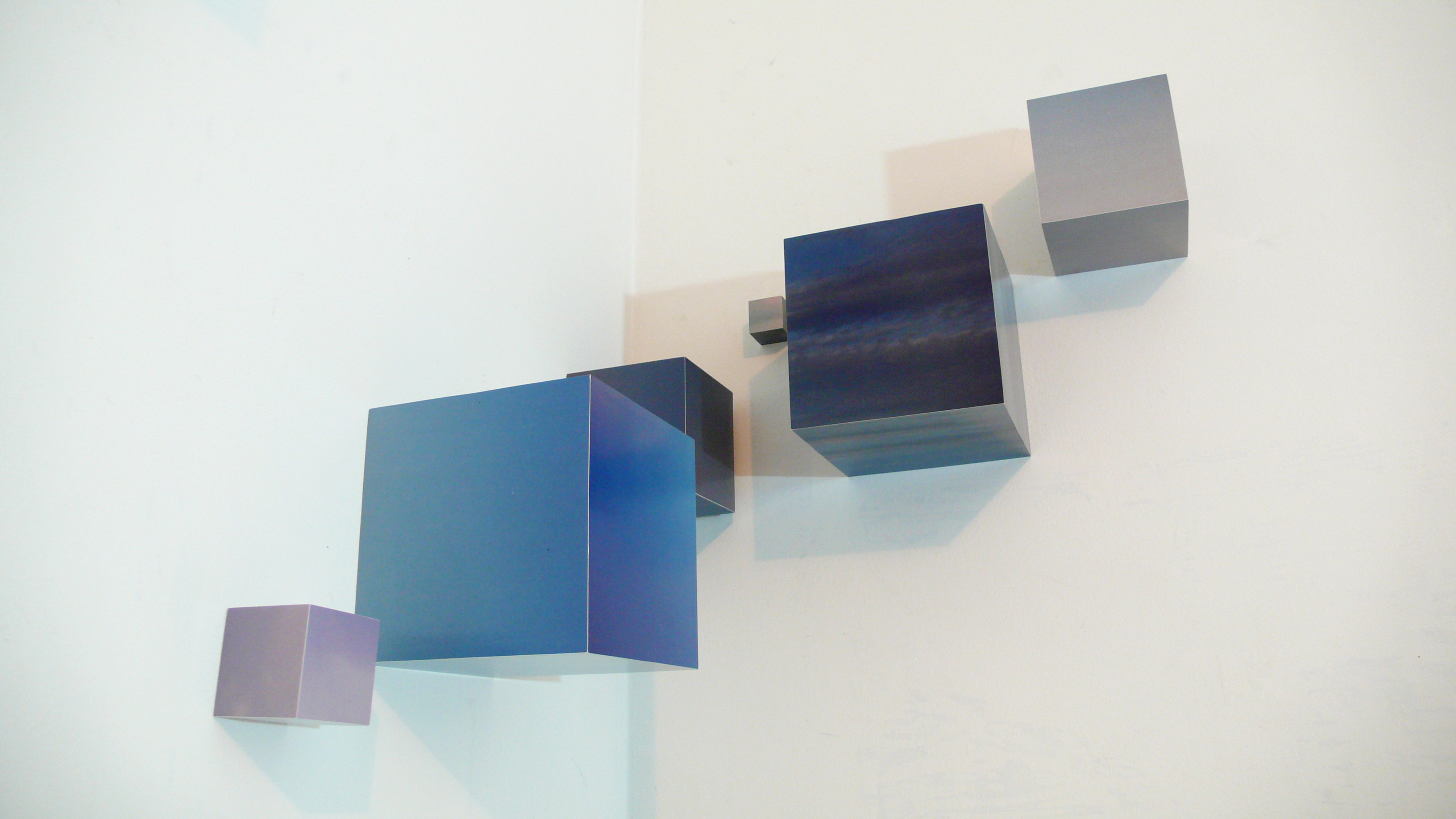 Como foi pensada a estrutura da instalação dos cubos aderidos nas paredes? Conte um pouco sobre como se deu essa opção.