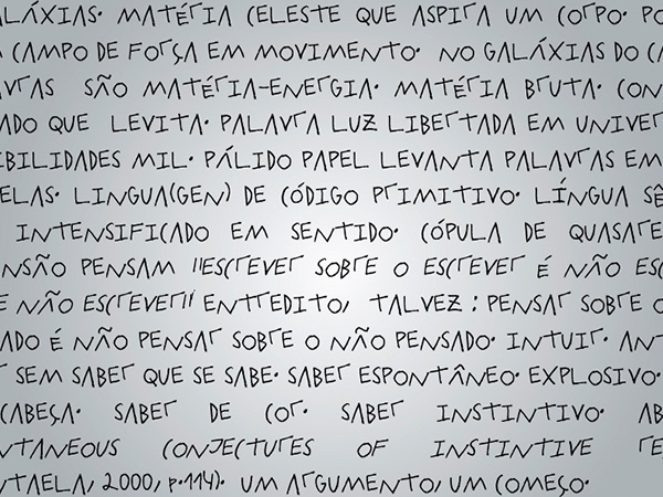 Pensando nas possibilidades que as materialidades da escrita possuem no que diz respeito à (re)leitura e à (re)criação do mundo, busco o contato com diferentes áreas do conhecimento humano e, por meio da ficção, ressignifico a minha leitura das realidades da Ciência na infinita busca de significados do universo.