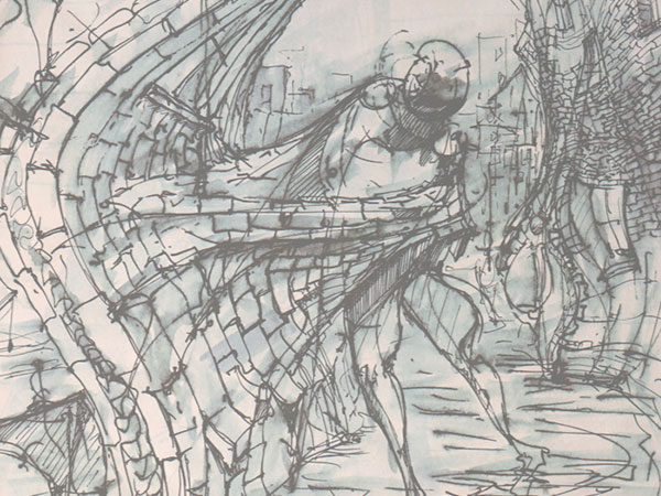 Contra a luz vez por outra, e com frequência com uma impenetrável escuridão atrás de si.”