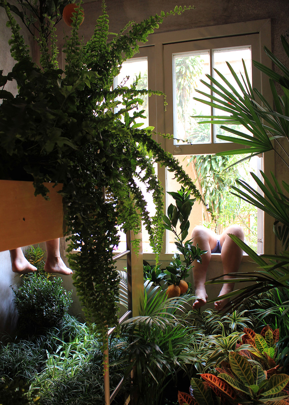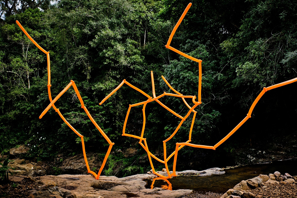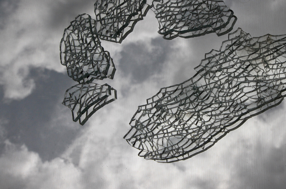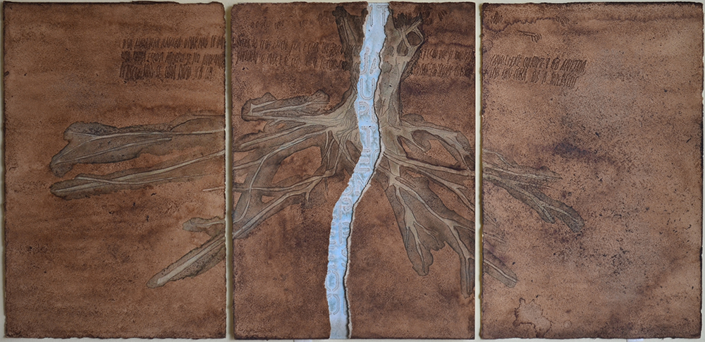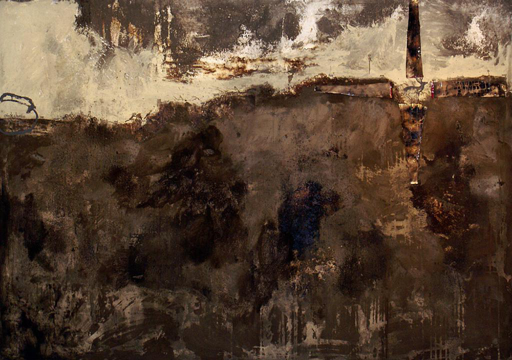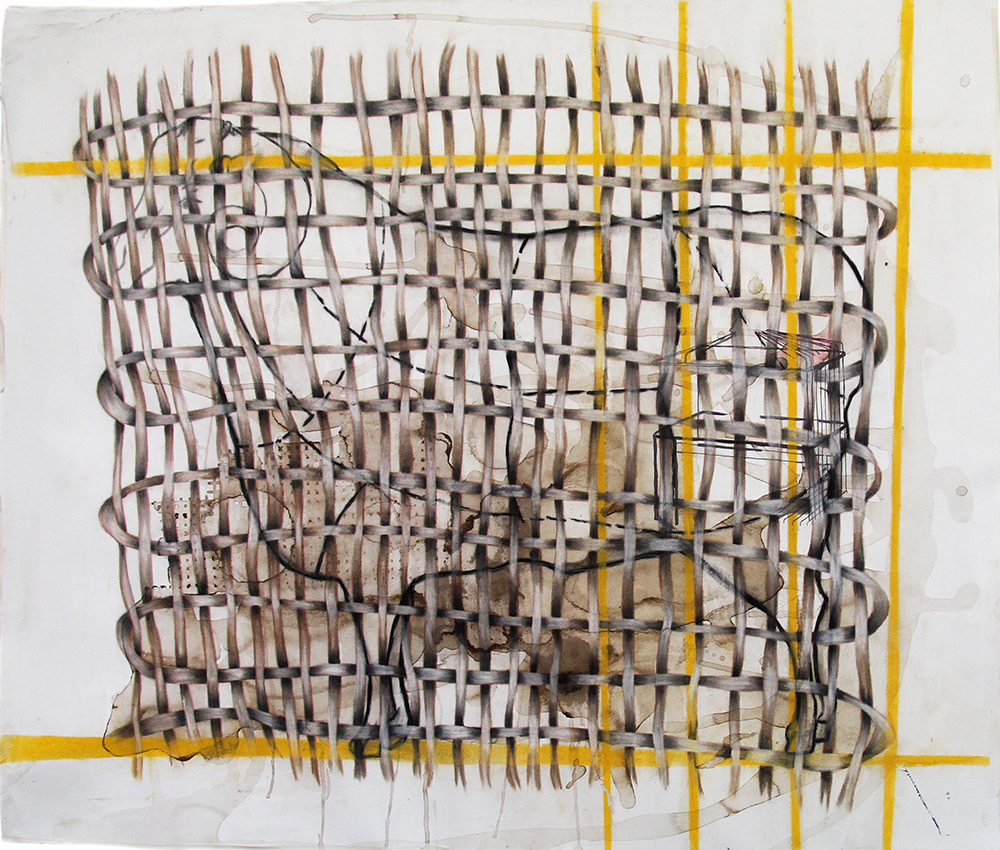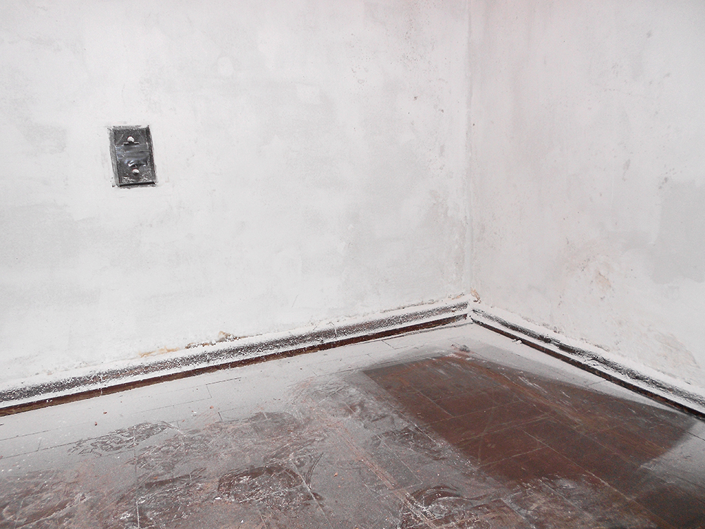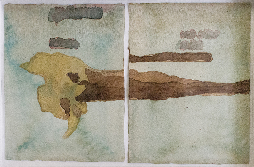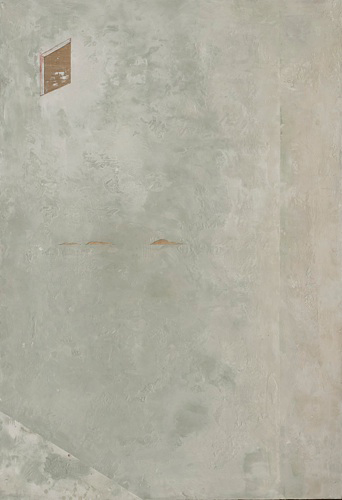 Nos trabalhos pertencentes à exposição, nota-se um envolvimento da artista com a superfície dos espaços arquitetônicos, paredes que se tornam massa pictórica, massa que solidifica gestos do tempo. Mas, também há as aberturas, as fendas na matéria trabalhada, recortes que dão a ver outras substâncias como a madeira opaca em “21º50'18"S 44º48'30"W”.