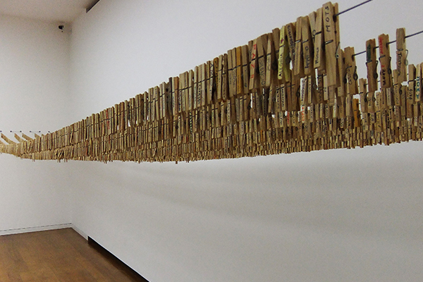 É com extrema e intensa admiração que observo tanto a produção de sua(s) forma(s), como seu lidar com as coisas e com as palavras. Suas ações, suas proposições, suas resoluções, fazem pensar em um tipo específico de “coisas verbo-visuais”. Neste curto espaço, que não pretendo ultrapassar, apenas insinuo o que penso: suas palavras são palavras ordenadas, pois que criam nova morfologia e apontam para uma nova sintaxe. Que exige o novo do homem. E lembro bem da palavra que deixei gravada nalgum dos prendedores da sua obra infinita: Você me dá a sua palavra?