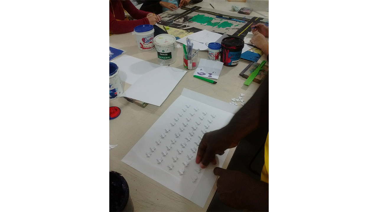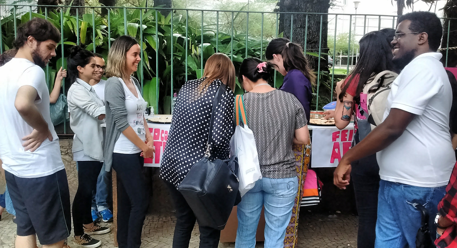 A receita vai crescendo e, quando isso acontece, os sentidos são aguçados! Vai-se para a rua. Diferentes participantes (cozinheiros, provadores, comedores) interagem, adentrando a oficina/cozinha. Despertam-se novos cheiros e diferentes sabores, o que só enriquece a mediação! E essa nutrição estética vai além das tradicionais obras de arte! Ampliamos nossos horizontes, pois aqui o fazer e o criar são bem aceitos! Tem-se um vasto cardápio: palestras, performances, ocupação de muros de escola, ou ações na porta de hospitais, para levar um bocado de doces a transeuntes famintos de intervenções.