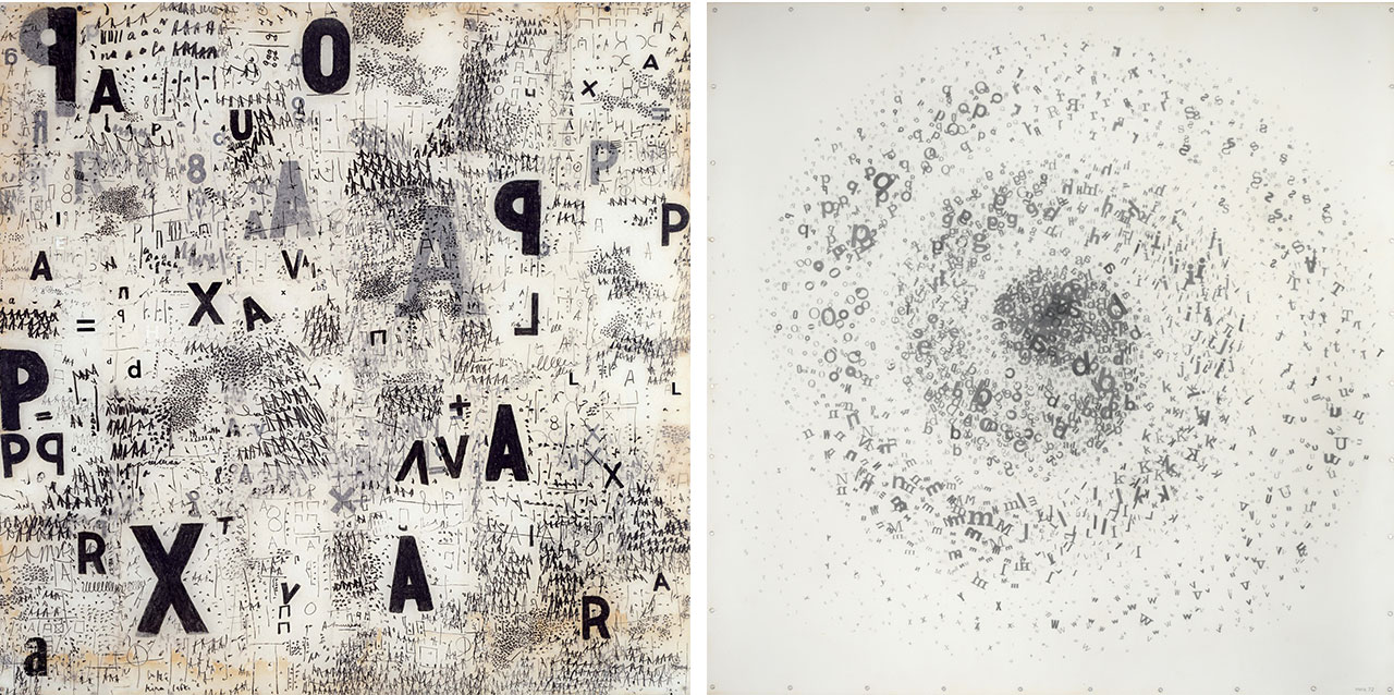O caráter aparentemente experimental, intuitivo, primevo, que muitas vezes faz as obras em Mira parecerem estudos é, talvez, o que mais desperta minha atenção em sua produção, sobretudo nas monotipias. Para mim, é isso o que permite conferir à Obra de Mira a força de escritura (com o secreto da “linguagem adâmica”!). Mira considera a letra, a tentativa-de-letra, como potência gráfica quando garatuja ou decalca escritas, em vias de, quem sabe, vetorizar algum idioma próprio: como se o sucessivo decalcar de signos, de alfabetos (onipresentes em sua Obra) ou o ensaio da grafia, no movimento do próprio punho, pudessem, nessa “subjetivação da escrita”, combater o fascismo da língua (expressão política, tão cara a Roland Barthes).