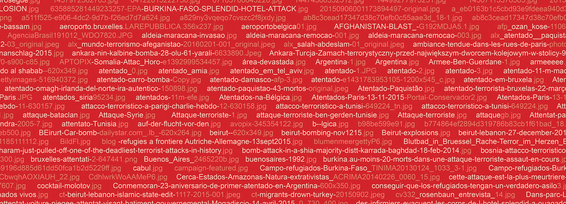 No coração da galeria, ajoelhei-me para fotografar a folha com o nome de todos os artistas apropriados nas faixas de “Manifestação", e me vi como fotografia. Por vezes, arte é idolatria. Assustento este gesto simbólico que, contado aqui, se transforma em imagem — imagem essa muito mais lacunar na mente dos outros do que a carregada de pixel, de dots, pontos, sais de prata, pois mais subjetiva. Fabio havia colocado a lista lá de propósito. Nossa conversa começou antes.