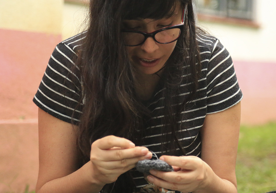 La pieza Al vacío1 surgió de una acción que consistió en tejer con el grupo de colaboradoras en el interior de la iglesia de San Agustín, en el Centro de Tlalpan, en la Ciudad de México. Durante la acción los movimientos de las agujas fueron registrados con micrófonos de forma clandestina, la narrativa se sostiene en el acto de la repetición, la conversación silenciosa y el estado de trance. En esta pieza mi intención fue realizar una narrativa sonora con elementos muy sutiles, buscando provocar vértigo dentro del espacio audible. Esta obra se trata de establecer una relación entre el rezo y el tejido. Es decir, ambas son actividades repetitivas que provocan un estado cercano al trance, y que proyectan diferentes espacios de sensibilidad. Rezar y el tejer pueden ser actos solitarios que se prestan para hablar a solas, como si la misma mente creara dos personajes que conversan uno frente al otro. La intención era ligar ambas acciones, el rezo y el tejido, en un mismo espacio reflexivo. Los sonidos captados gracias a la acústica del espacio, y los detalles de cada movimiento, crearon intensidad que se puede apreciar al final de la pista sonora. La sutileza con la que comienza este proceso recuerda, al final de la grabación, a una conversación sin palabras. El tejido colectivo parecía funcionar como una confesión en la que se exponen profundas sinceridades en ritmos hilarantes y silenciosos... La versión original está realizada en versión 5.1 sourround para replicar realmente la disposición en la que las participantes estaban ubicadas conforme su localización real en la nave de la iglesia.