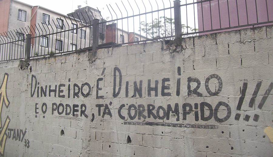Se por um lado temos o sistema da arte como um ralo de significação, no sentido em que esvazia a potência dessas expressões de rua, também podemos encarar o posicionamento desses lugares como um espaço de visibilidade para esses artistas.2 No entanto, é necessário ressaltar que os espaços culturais costumam evidenciar a figura do artista individual, e essas manifestações no espaço público se fazem em coletivo na maior parte das vezes. E não apenas os espaços institucionais servem como meios de legitimação; o discurso crítico também tem dado atenção à produção urbana. No momento em que se publica um texto sobre pichação, trazendo reflexões sobre suas implicações no contexto cultural, essa manifestação de caráter criminoso dá um passo para dentro do sistema da arte. Mas não significa, ainda, que a intenção de reivindicação social e artística, inerente a essas expressões, foi perdida, até por que não dar atenção para qualquer manifestação cultural antrópica é como que passar uma borracha na história.